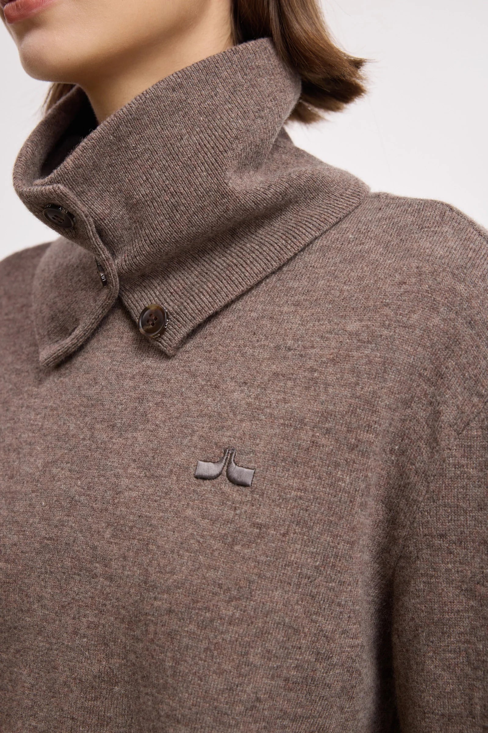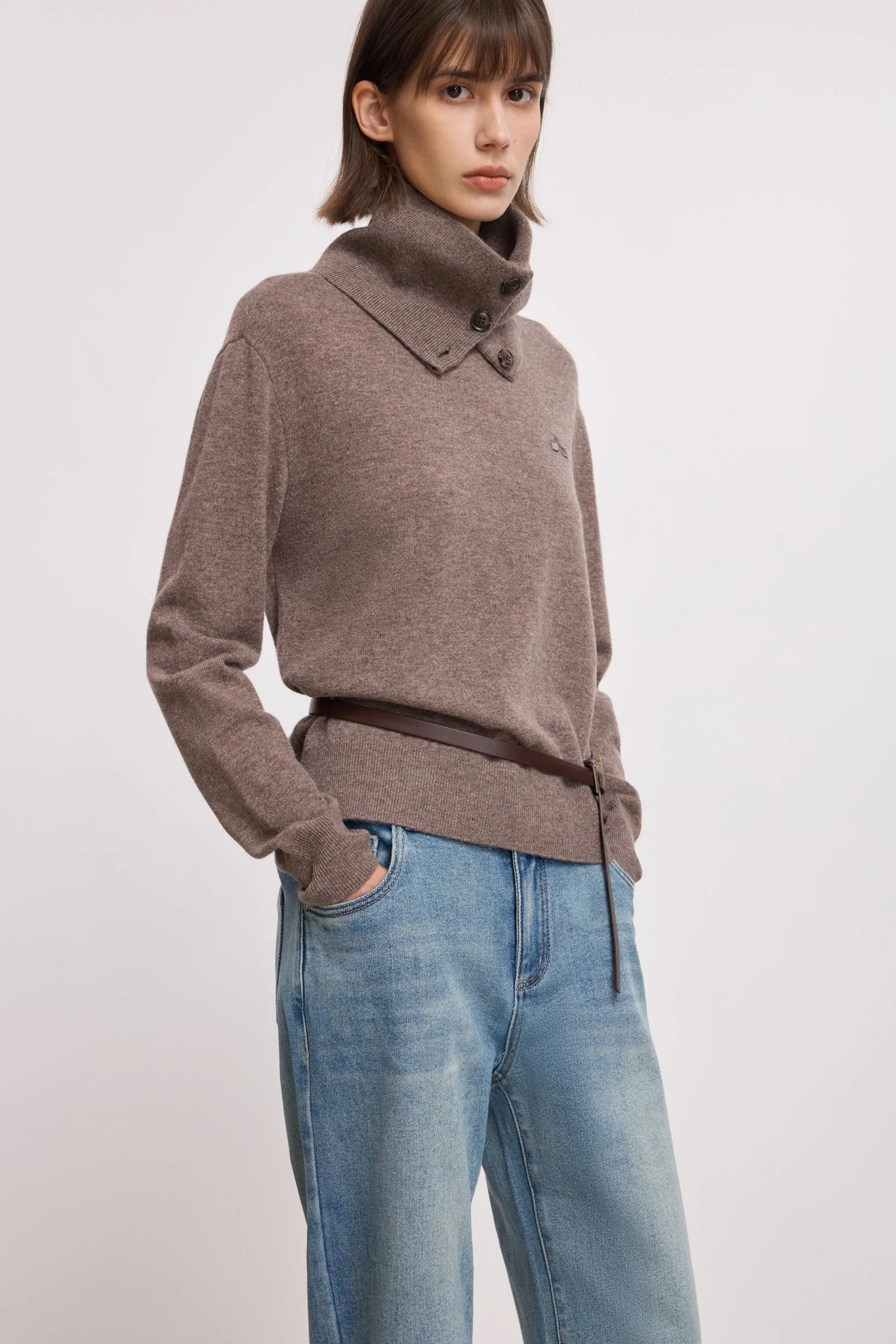 Crafted from pure wool, this sweater offers a naturally loose and soft feel, adding a relaxed touch to any winter commute. A matching neck scarf completes the look, wrapping around the neck for warmth.