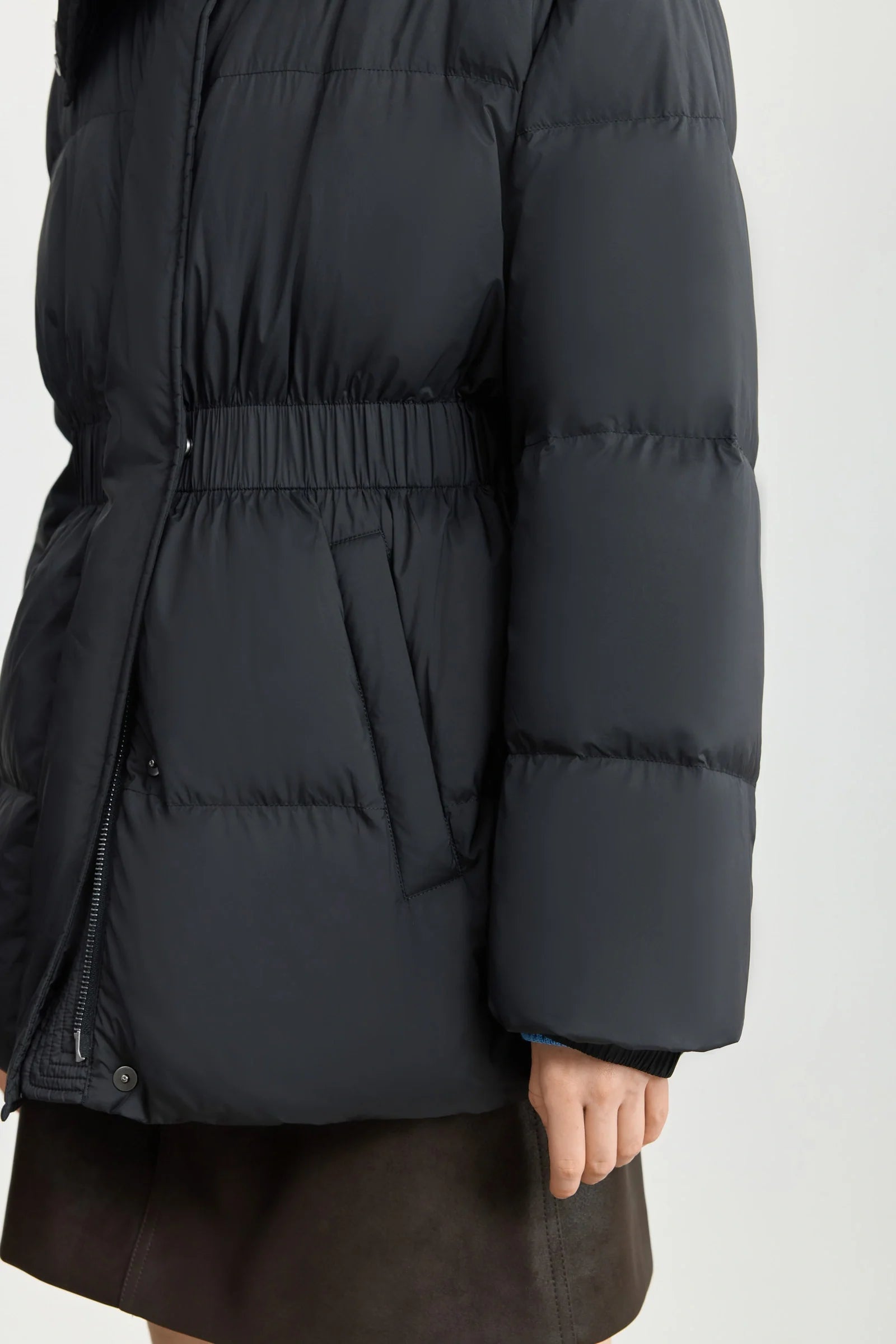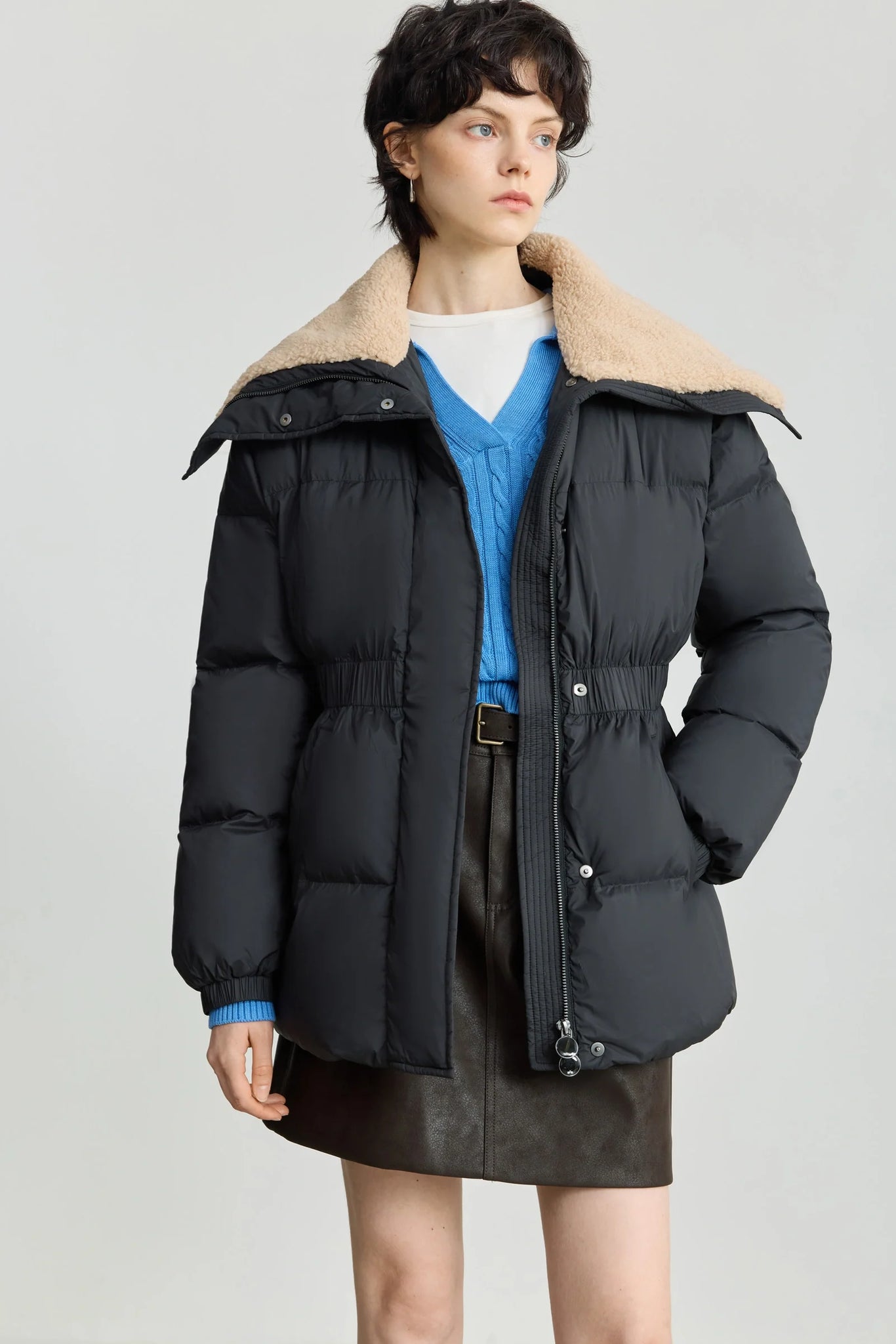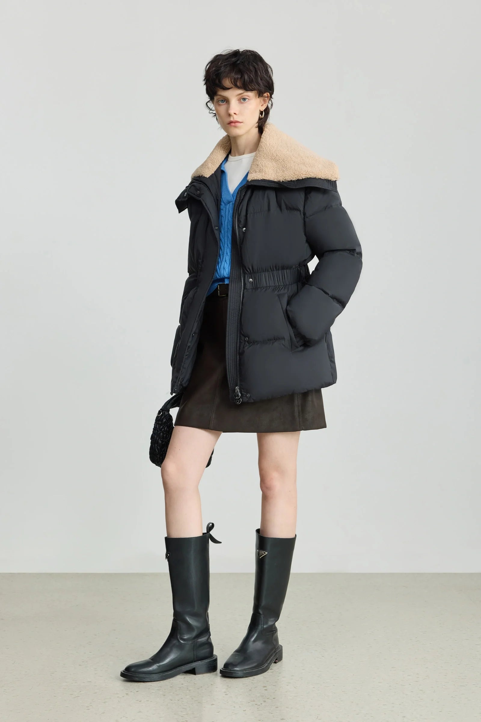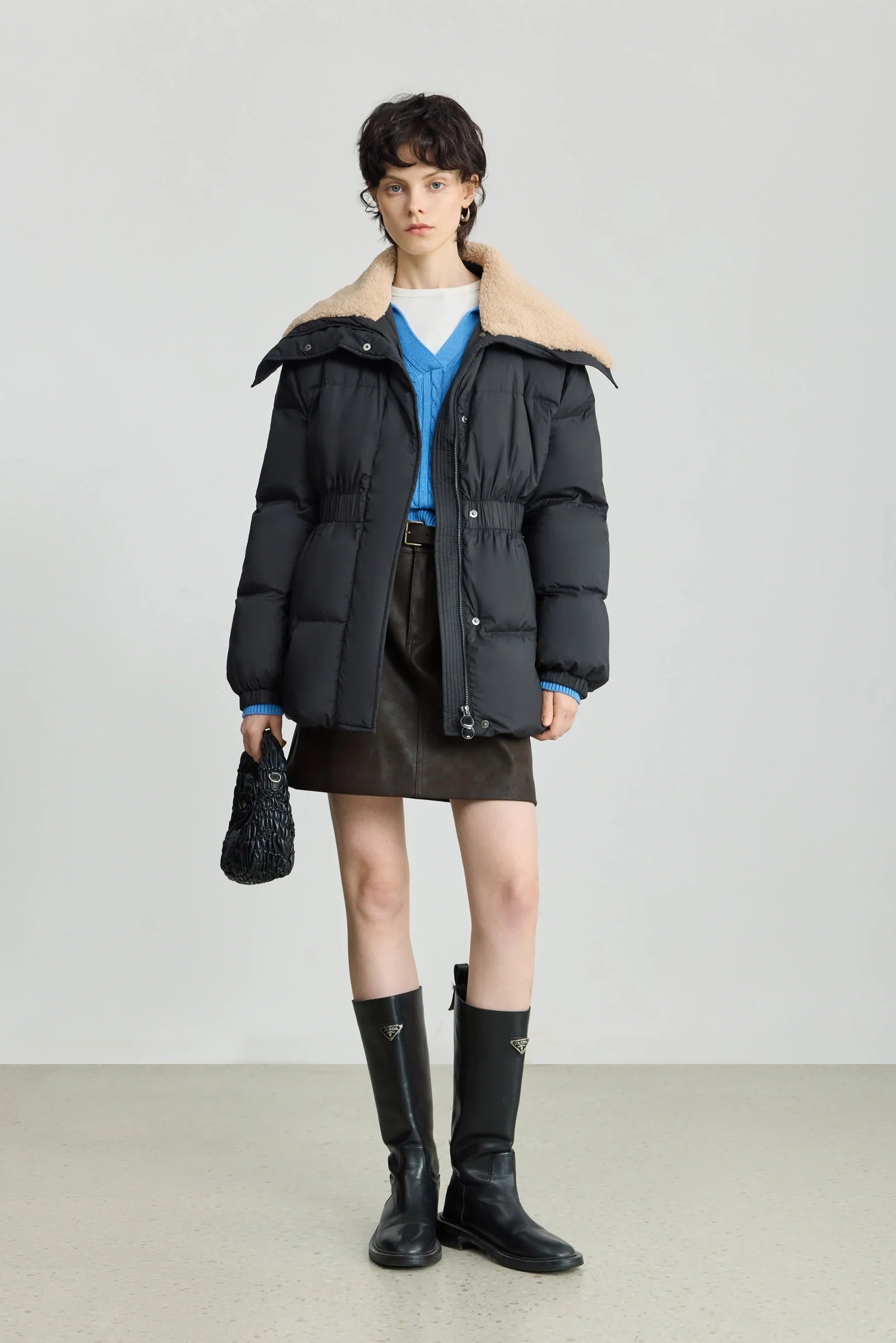 The large lapel features contrasting colors for a distinct layering, while fine plush adds a soft touch to the crisp silhouette, balancing rationality with warmth. The fitted waist enhances the proportions, while the practical pockets create a warm, practical design, creating a winter-ready experience that combines both beauty and strength.