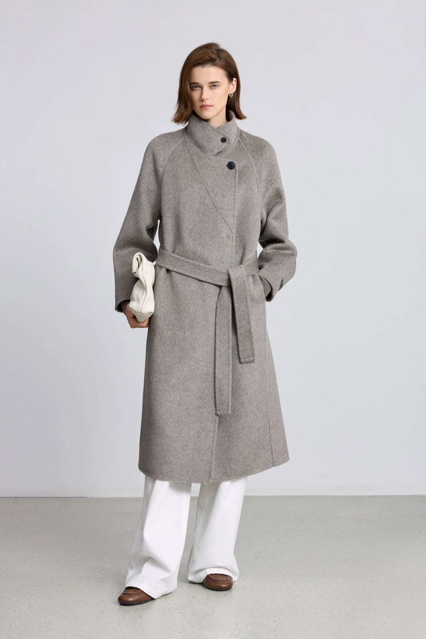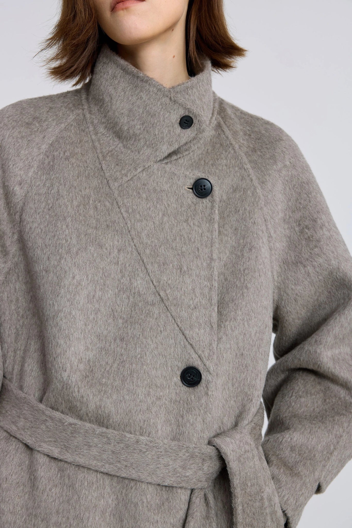 • Stand collar and lapel for two styling options; belt for either accentuating or relaxing the waist.