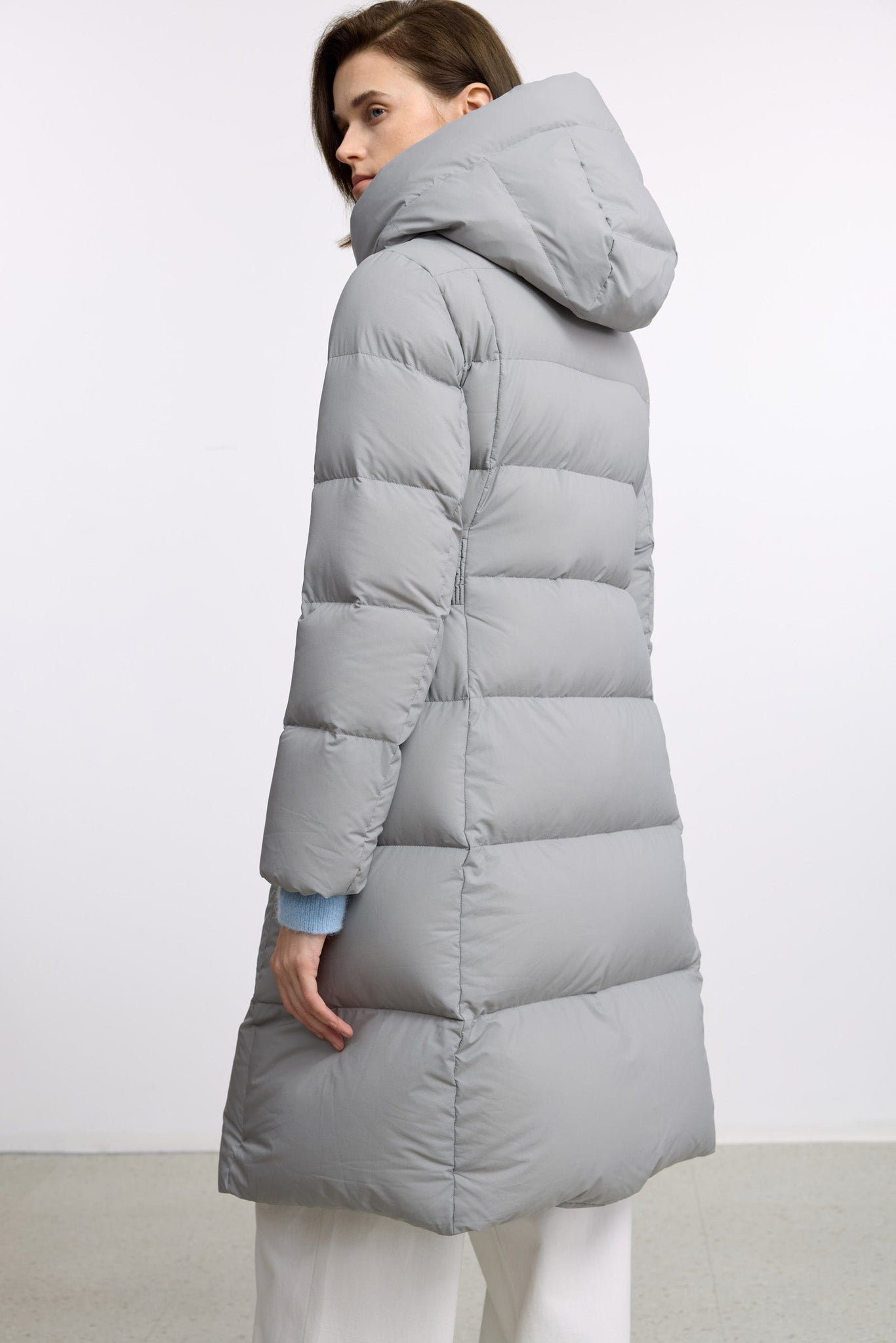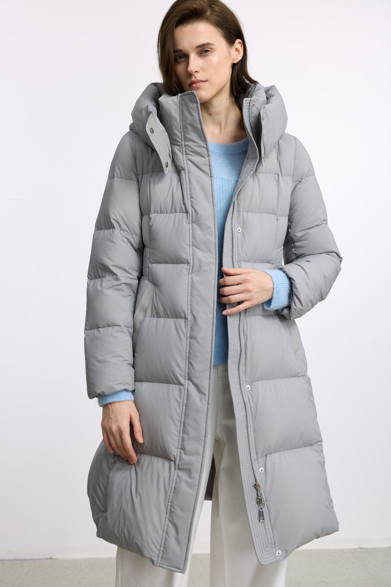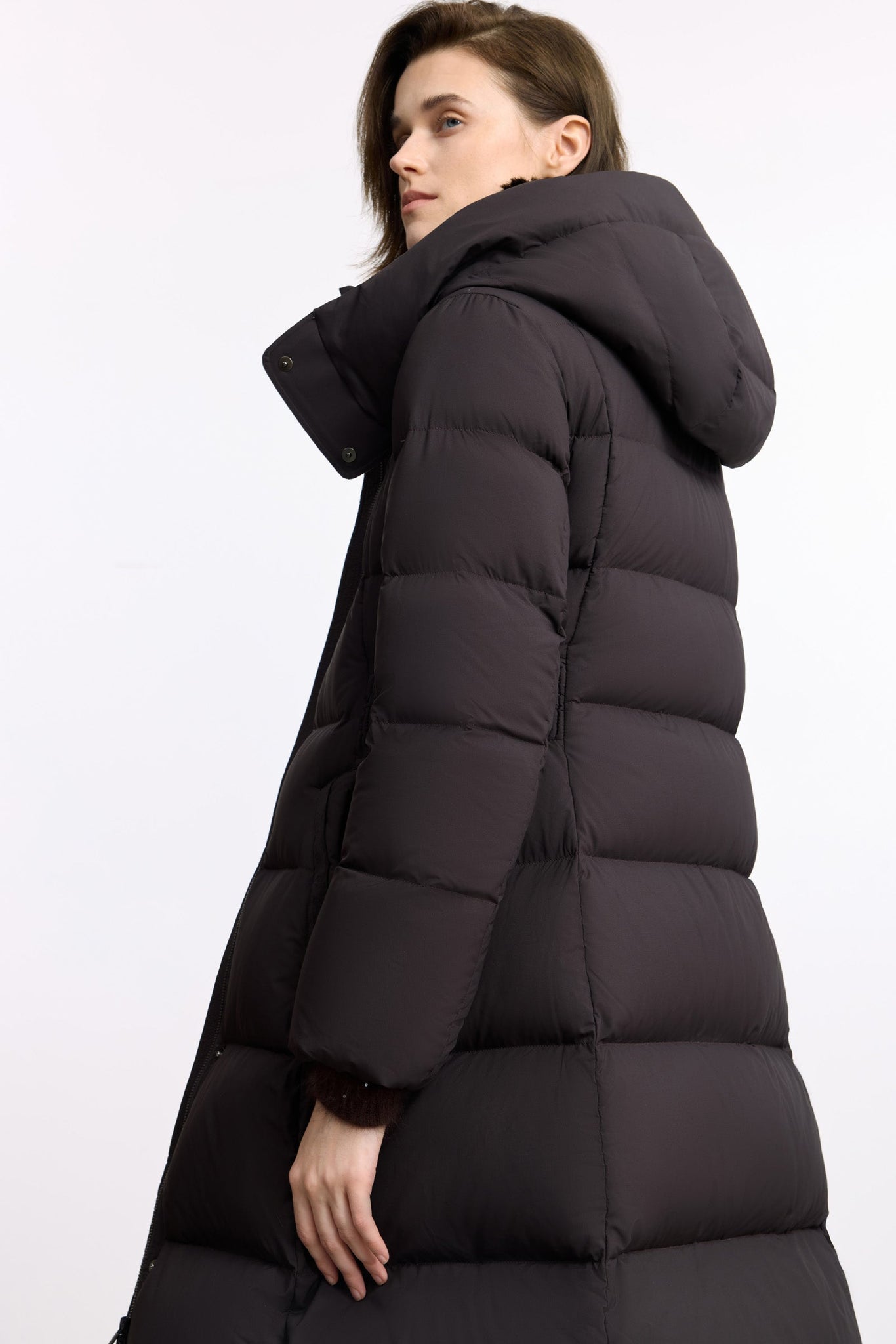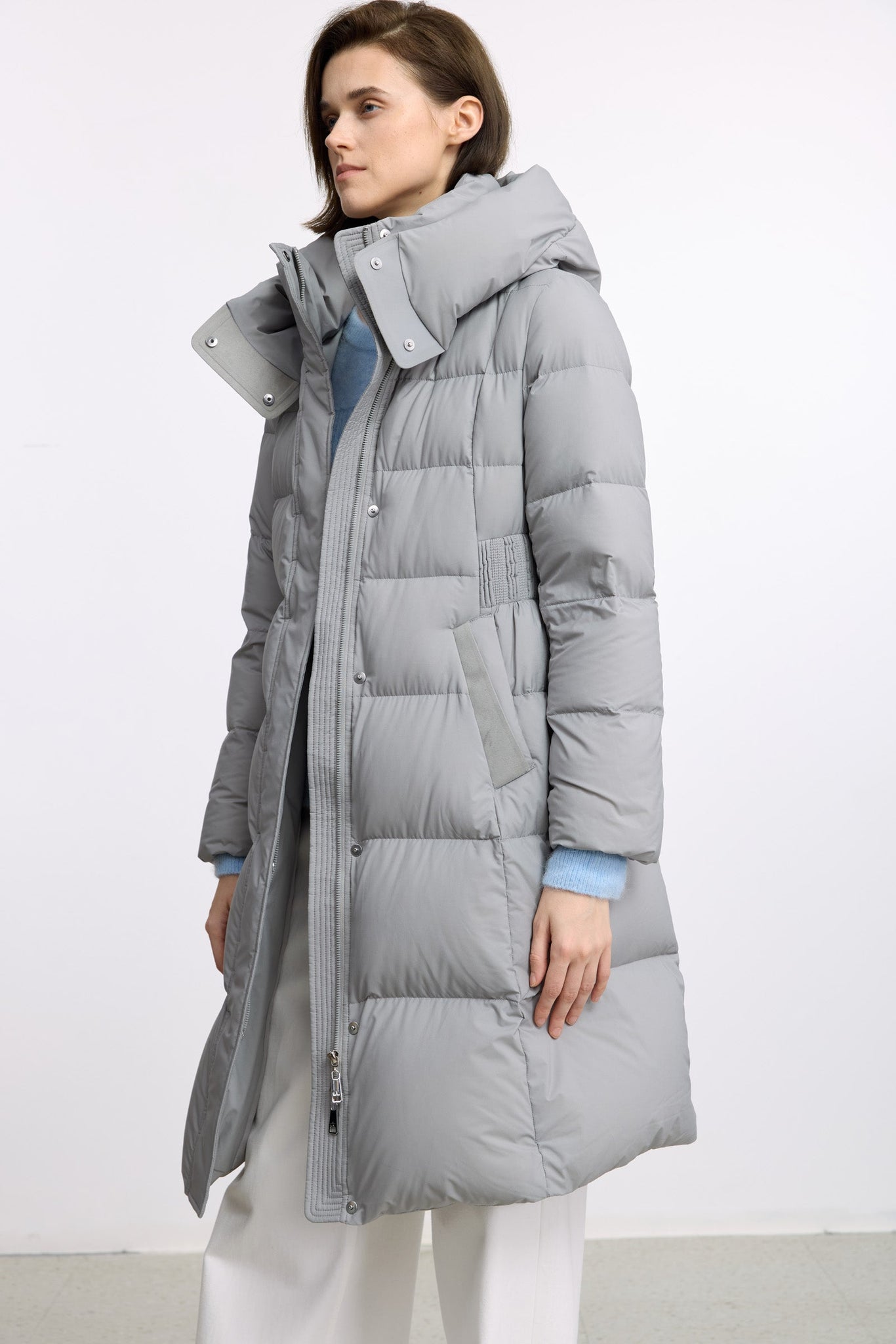 This high-quality rose velvet jacket, crafted with lightweight, velvety craftsmanship, embodies a relaxed and comfortable feel. The mulberry fabric imparts a light, airy feel, creating a cloud-like, soft warmth. The cinched waist design contours the figure, creating a flattering silhouette and effortlessly slimming without bulking. The long hooded style provides added warmth, while the clean silhouette provides coverage, creating a comfortable and elegant winter wardrobe.