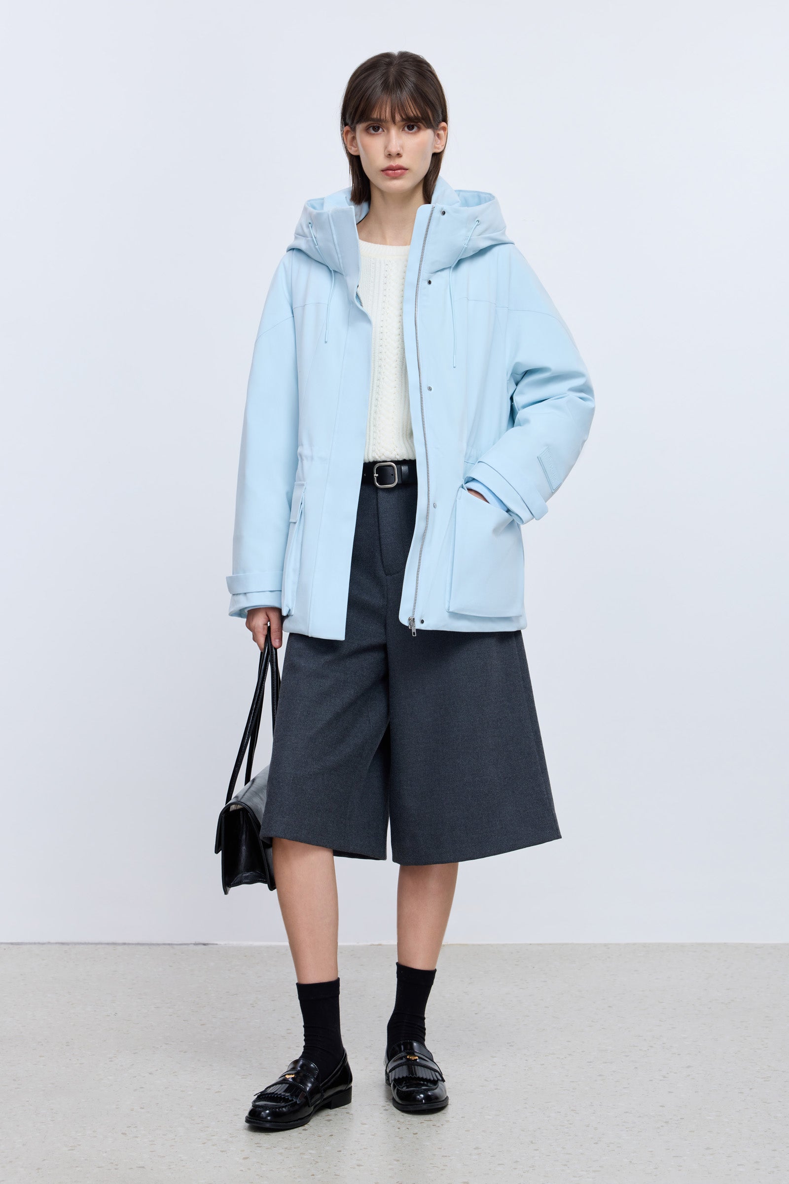 Unlike traditional down jacket materials, LILY has custom-developed the innovative “Wool Lycra” fabric, marking its first application in the downwear category. This new material combines luxurious business texture with weatherproof performance, featuring Merino wool and 700-fill premium goose down for dual-layer warmth and climate adaptability.