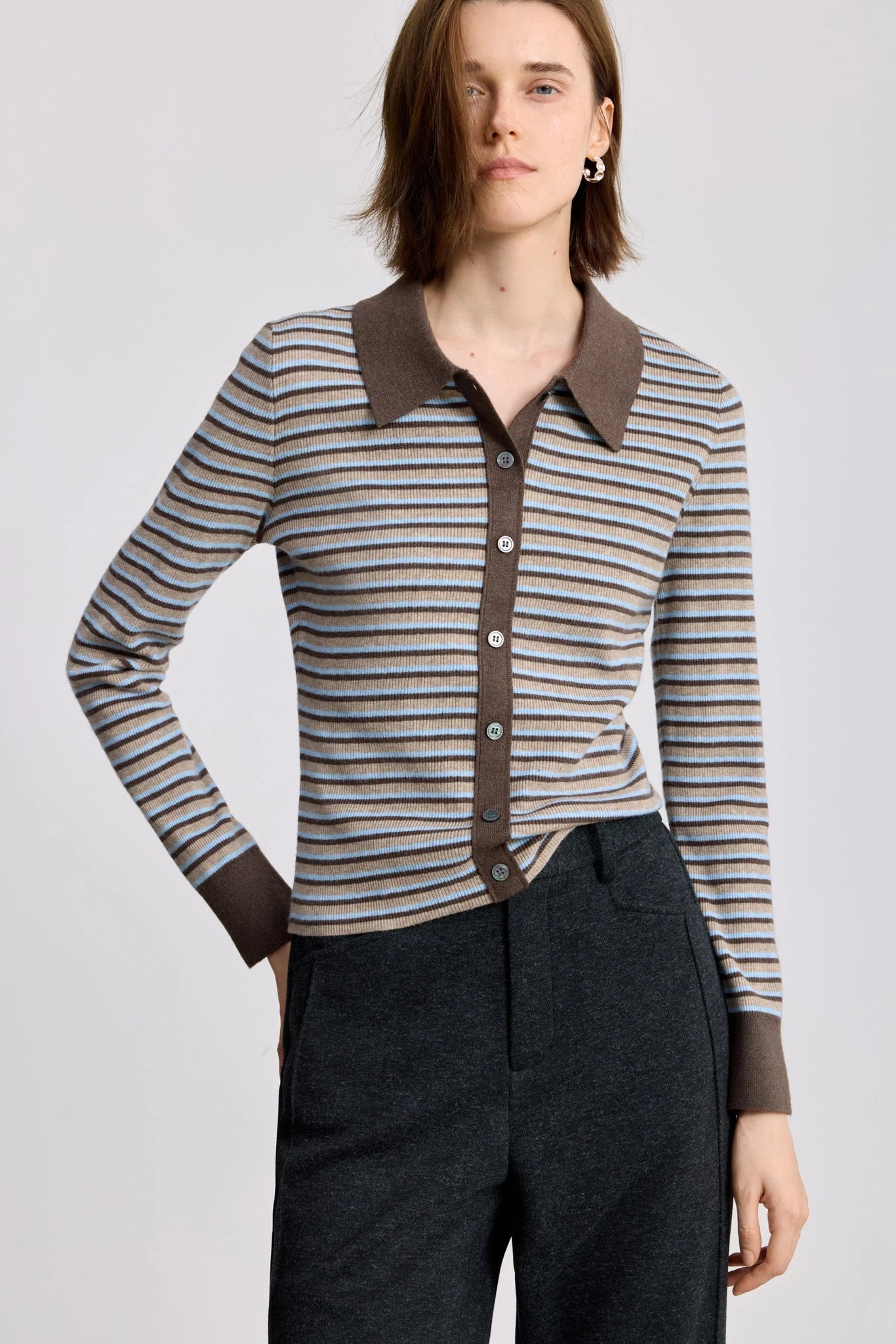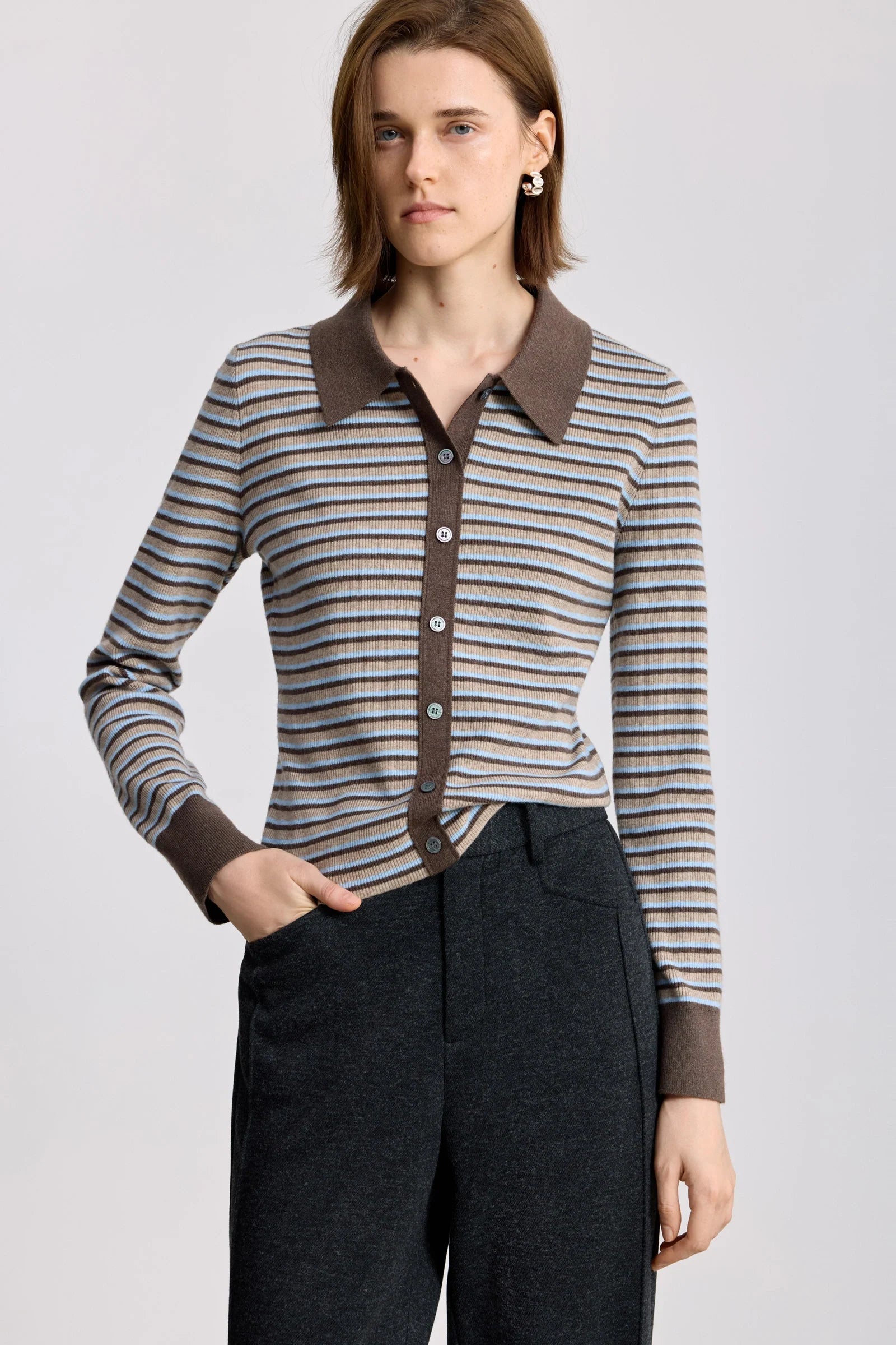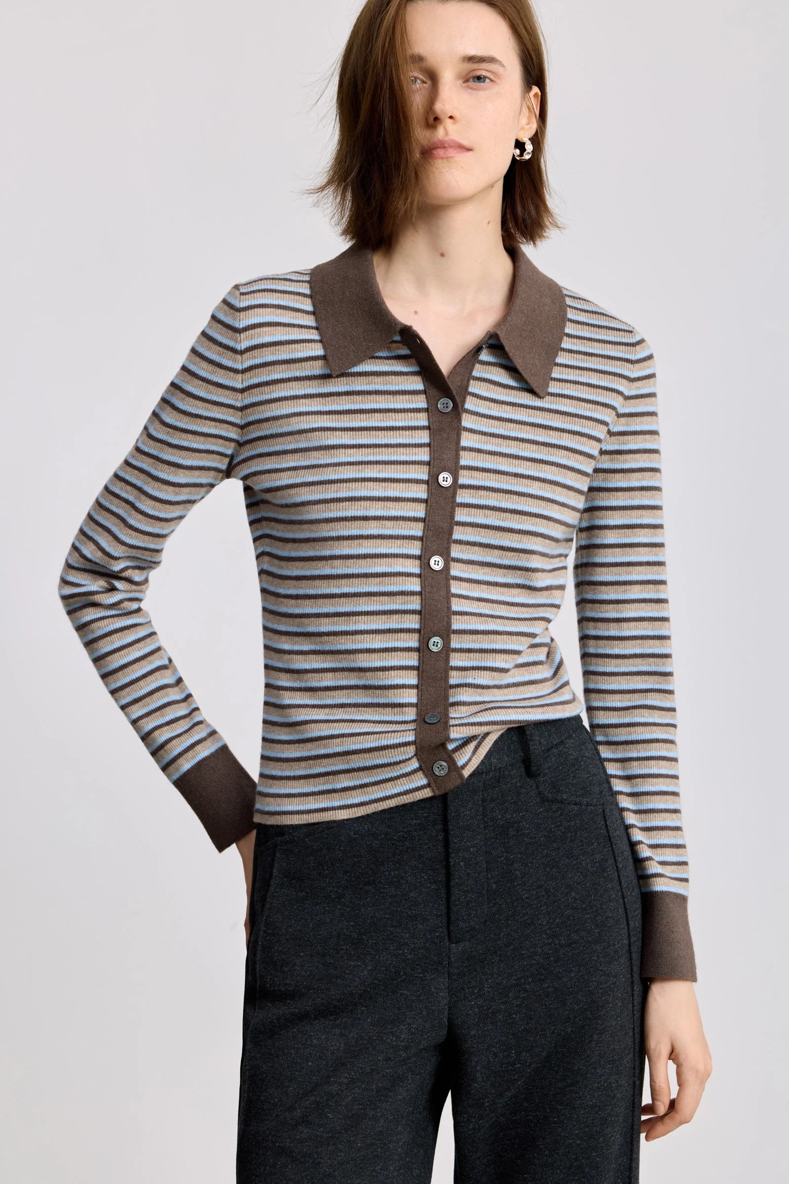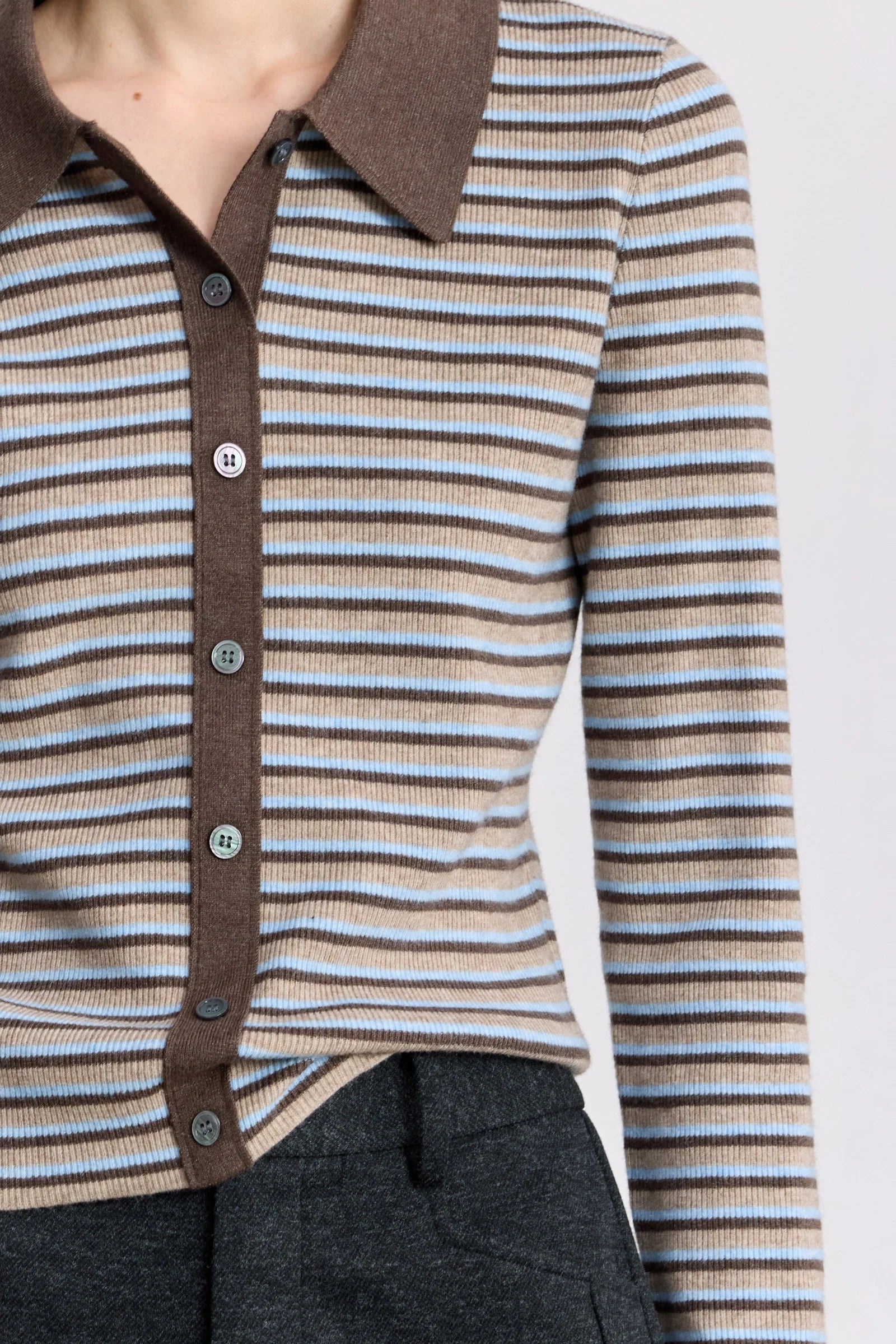 LILY Wool-Blend Striped Polo Cardigan