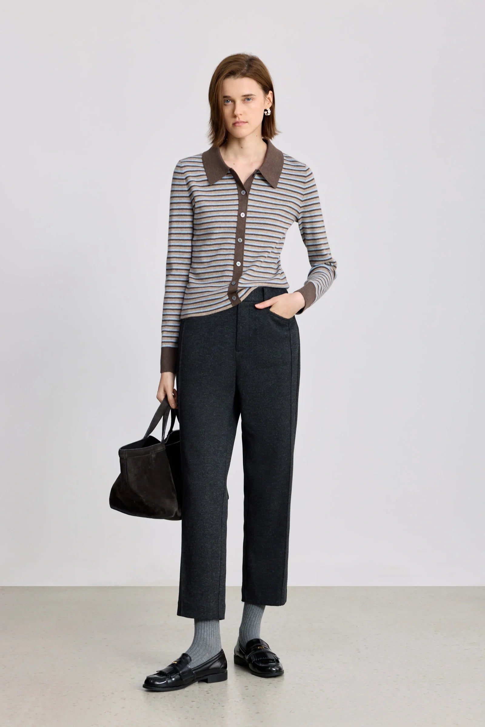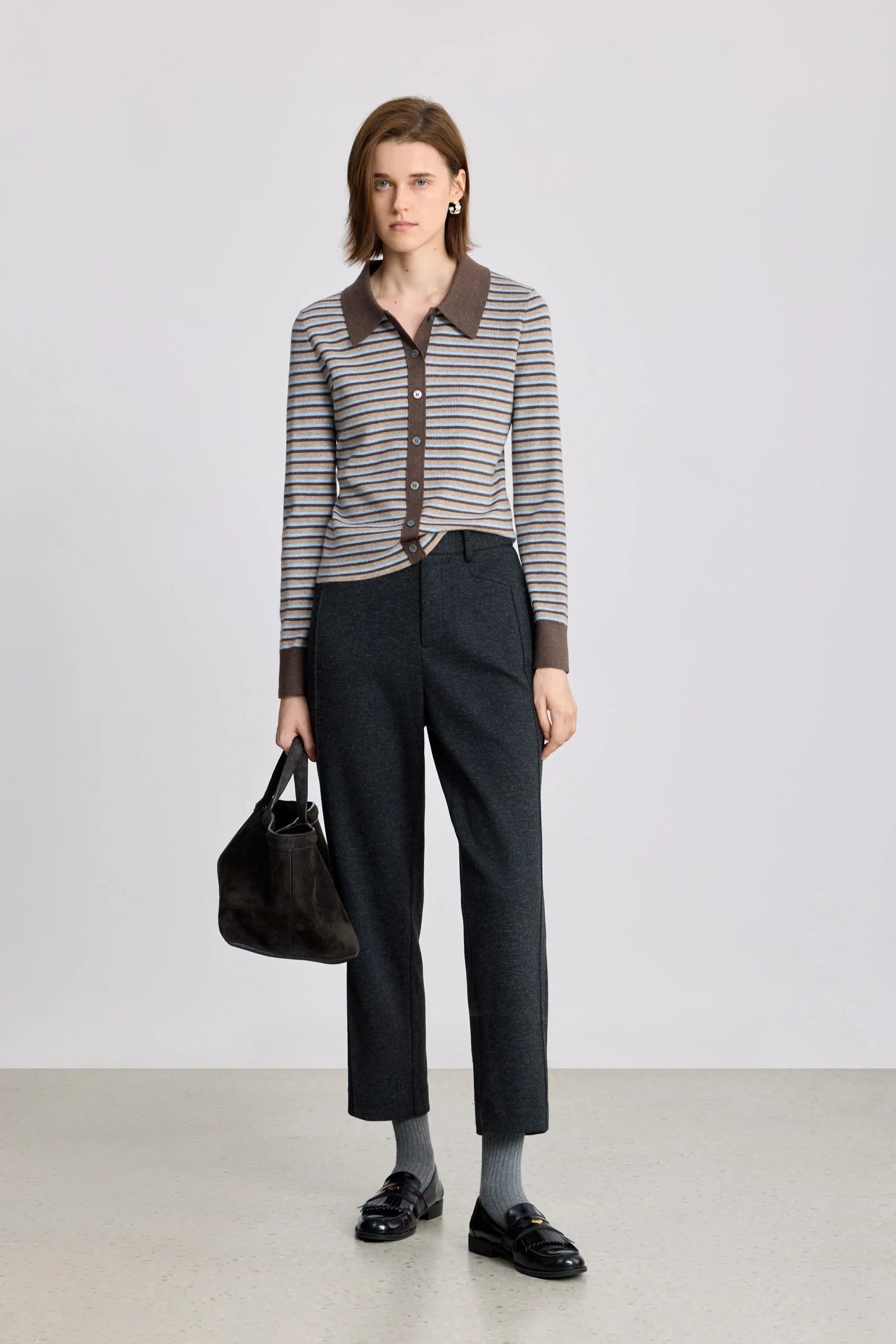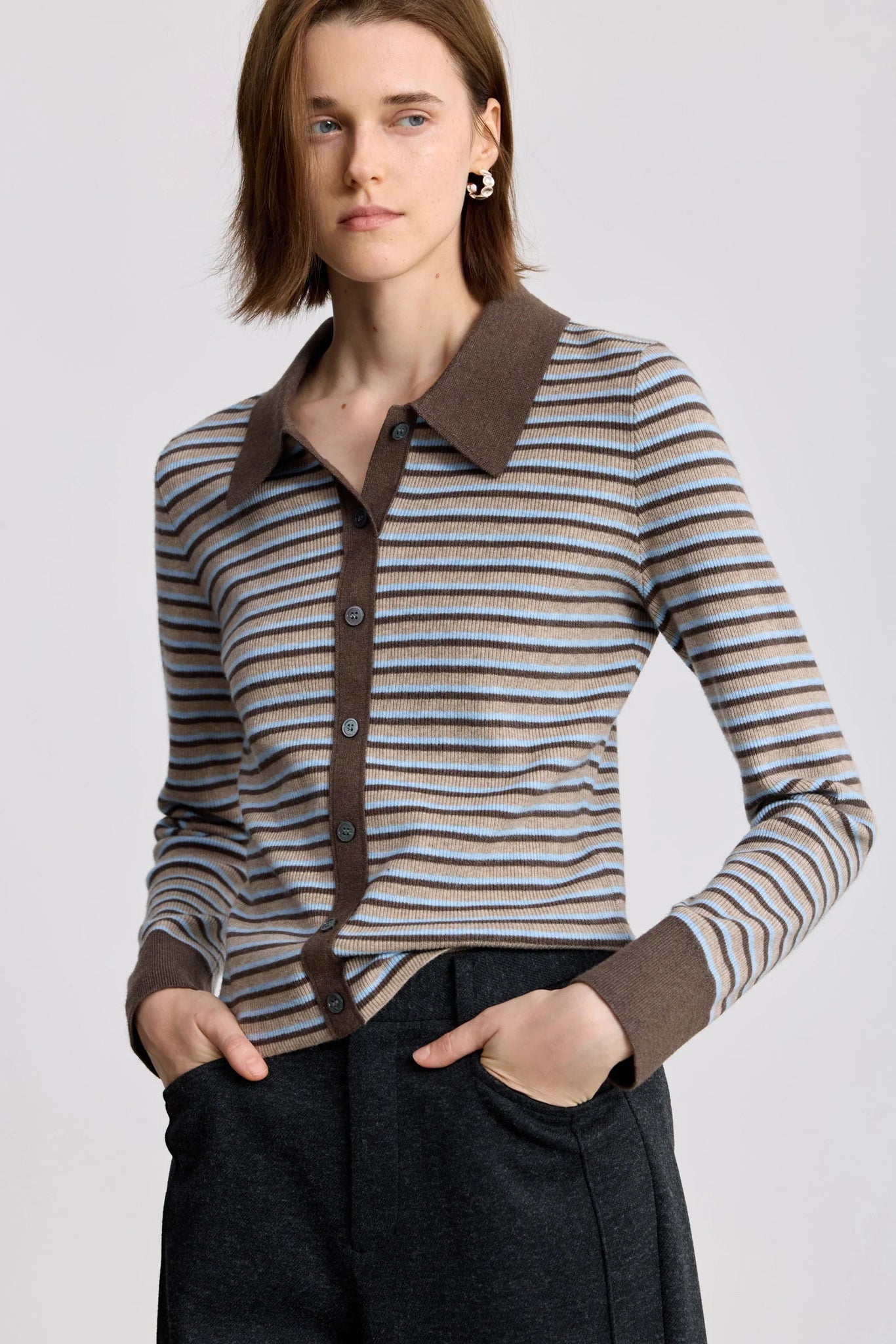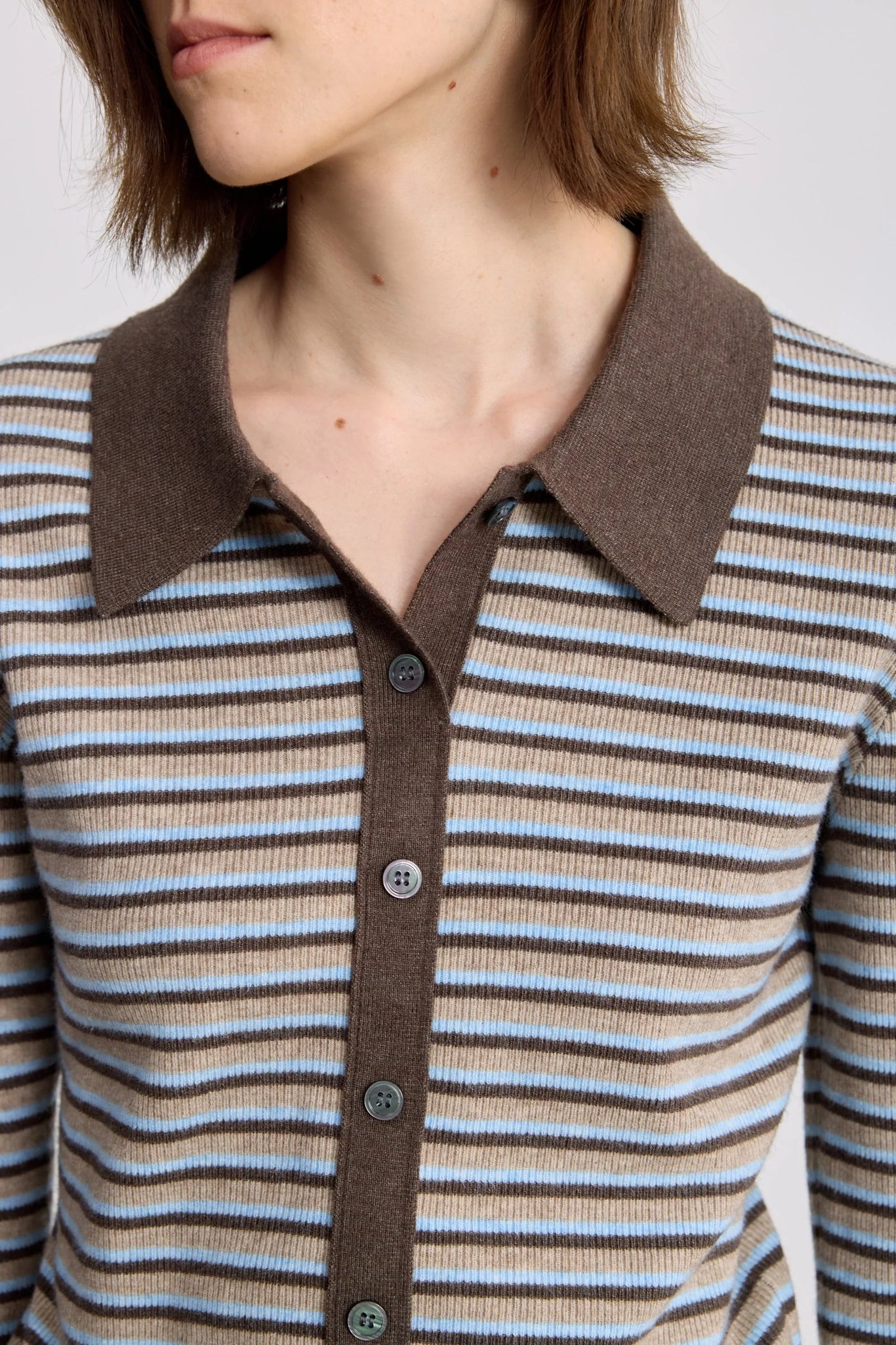 LILY Wool-Blend Striped Polo Cardigan